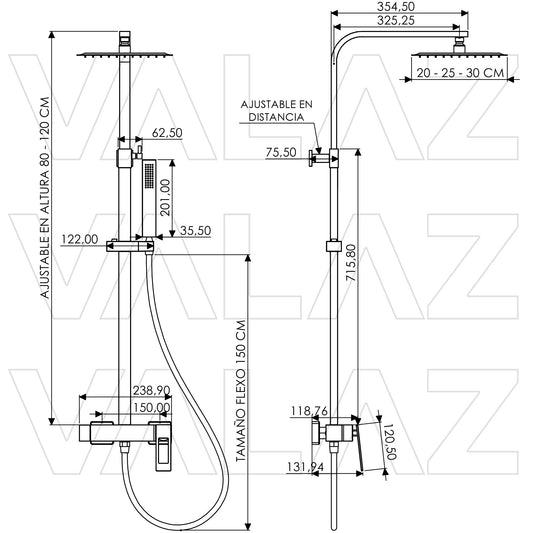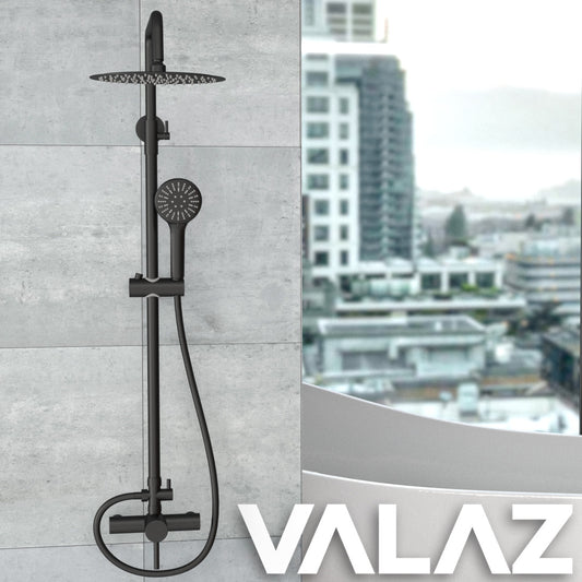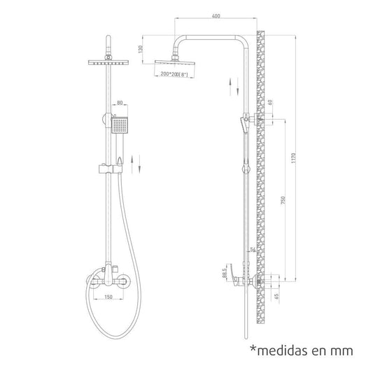 Columna de ducha monomando cuadrada con maneta hueca negro mate